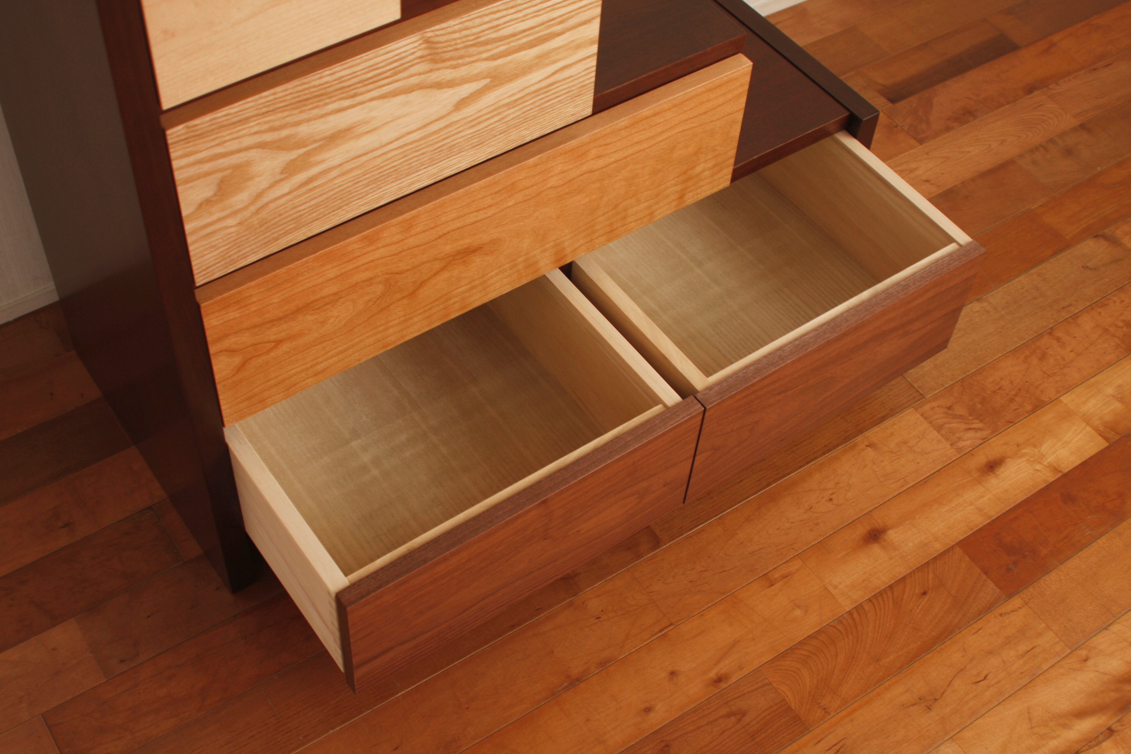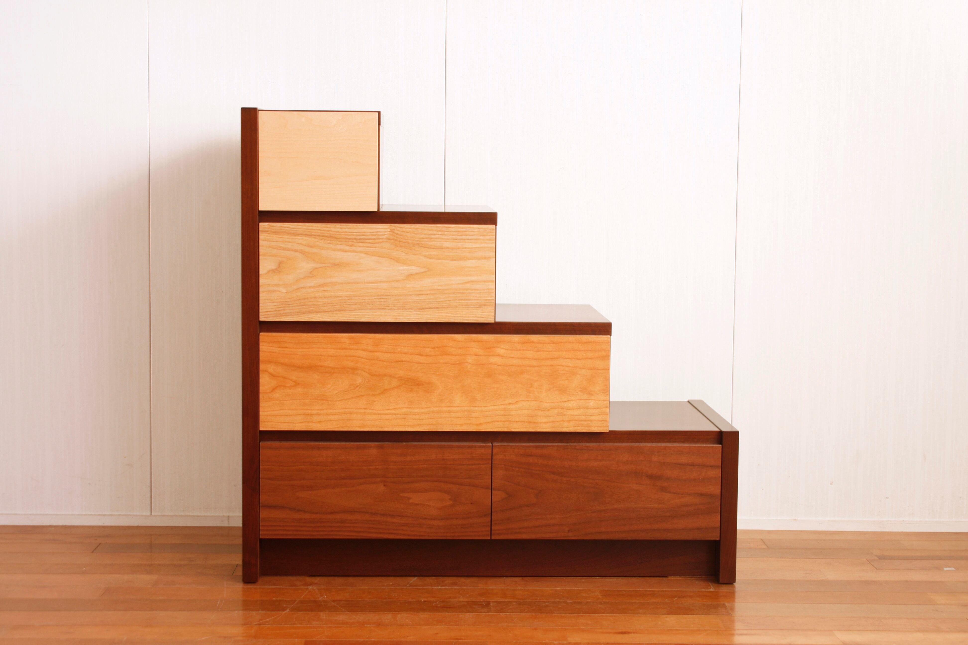 異なる5種類の天然木を使用【メーベル階段チェスト】