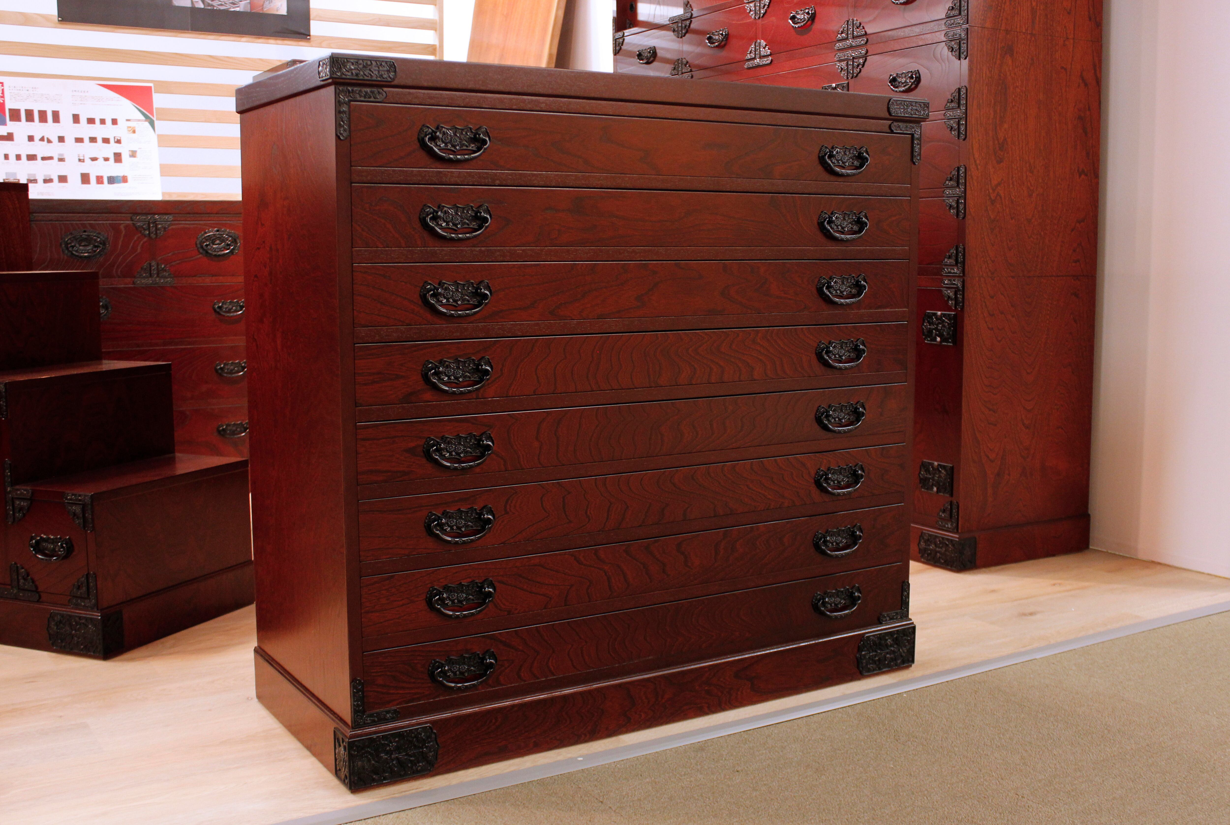 大切や衣類や着物、和装小物をシワや虫食い等から防ぎ効率よく収納できる浅引きタンスです。