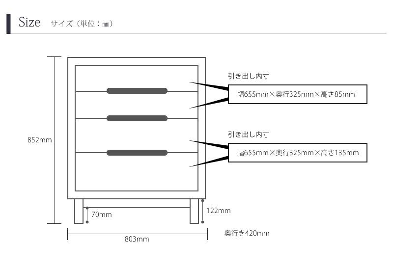 箪笥づくりの技を細部にわたり使い仕上げたシンブルなチェストです。