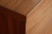 ・前面にウォールナット突板を使用し各段にカット上段から下段まで木目のとおった職人技術